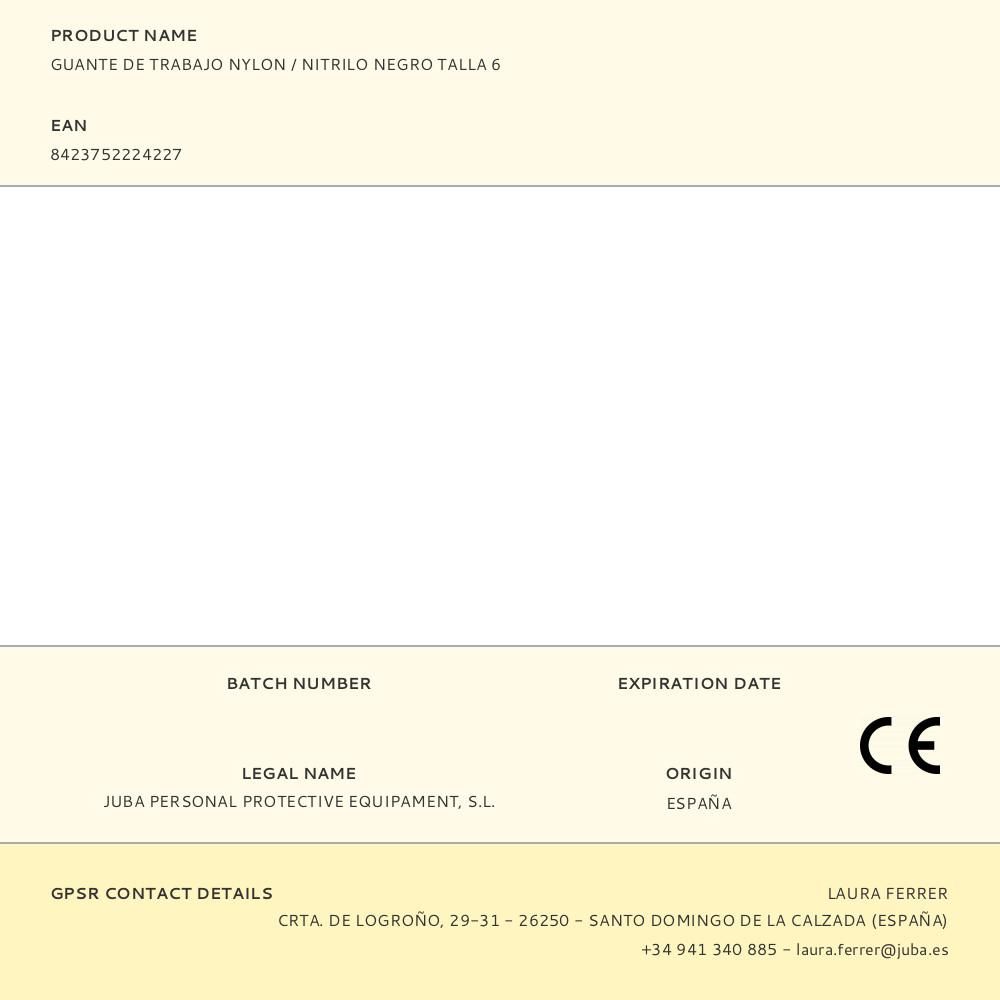 GUANTE NAILON RECUBIERTO TOTAL NITRILO, NEGRO, T-06