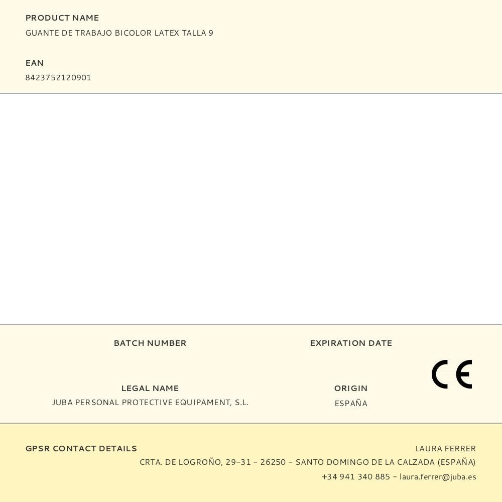 GUANTE LÁTEX, FLOCADO INTERIOR ALGODÓN, BICOLOR, T-09