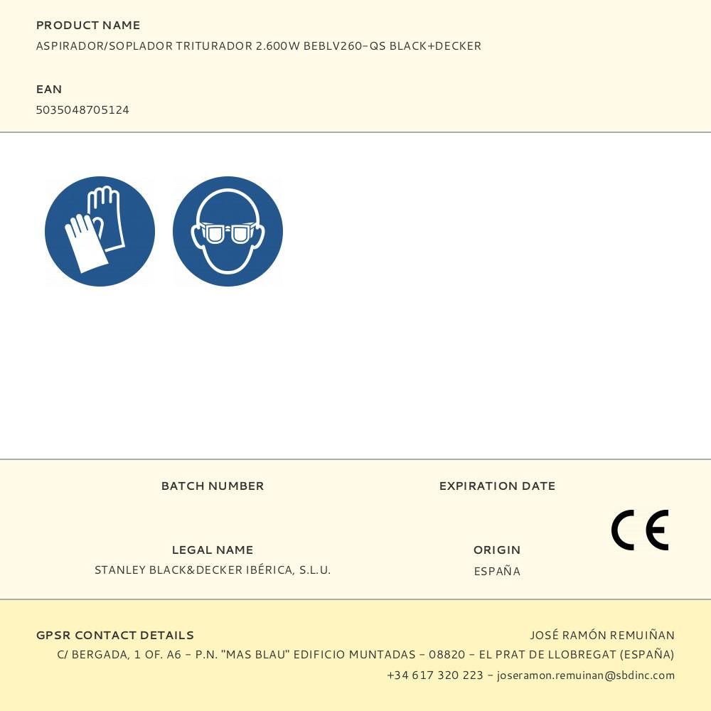 ASPIRADOR/SOPLADOR TRITURADOR 2.600W BEBLV260-QS BLACK+DECKER