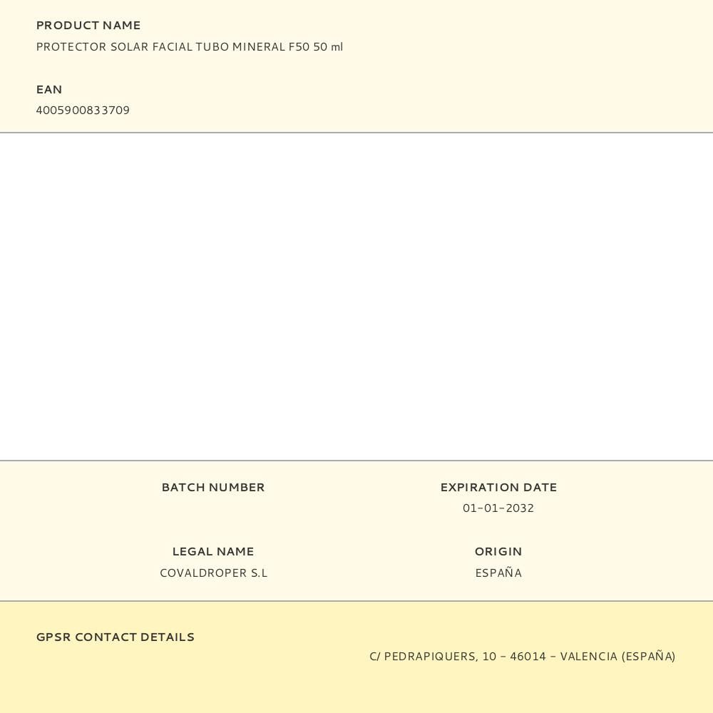 PROTECTOR SOLAR FACIAL TUBO MINERAL F50 50 ml