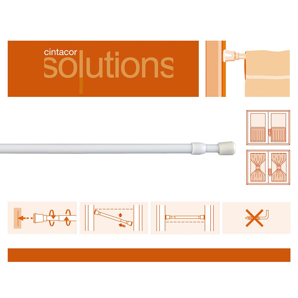 PORTAVISILLO EXTENSIBLE ROSCA BLANCO, Ø0,8 x 30 - 45 cm, 2 uds. PARA INSTALAR SIN TORNILLOS. FIJACIÓN A PRESIÓN. INSTALACIÓN A VENTANAS