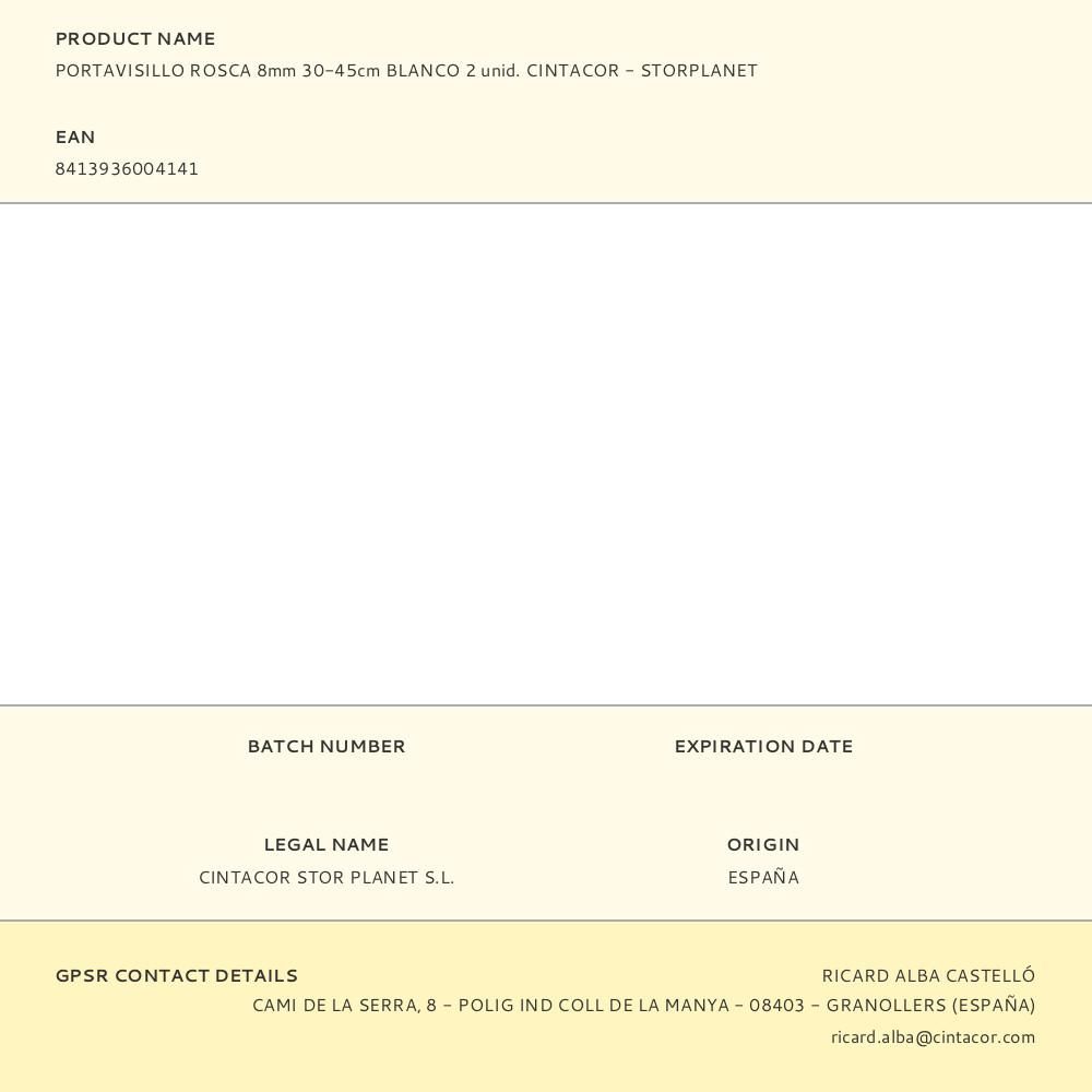 PORTAVISILLO EXTENSIBLE A PRESIÓN ROSCA BLANCO, Ø0,8 x 30 - 45 cm, 2 uds