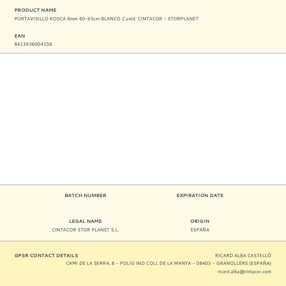 PORTAVISILLO EXTENSIBLE A PRESIÓN ROSCA BLANCO, Ø0,8 x 40 - 65 cm, 2 uds