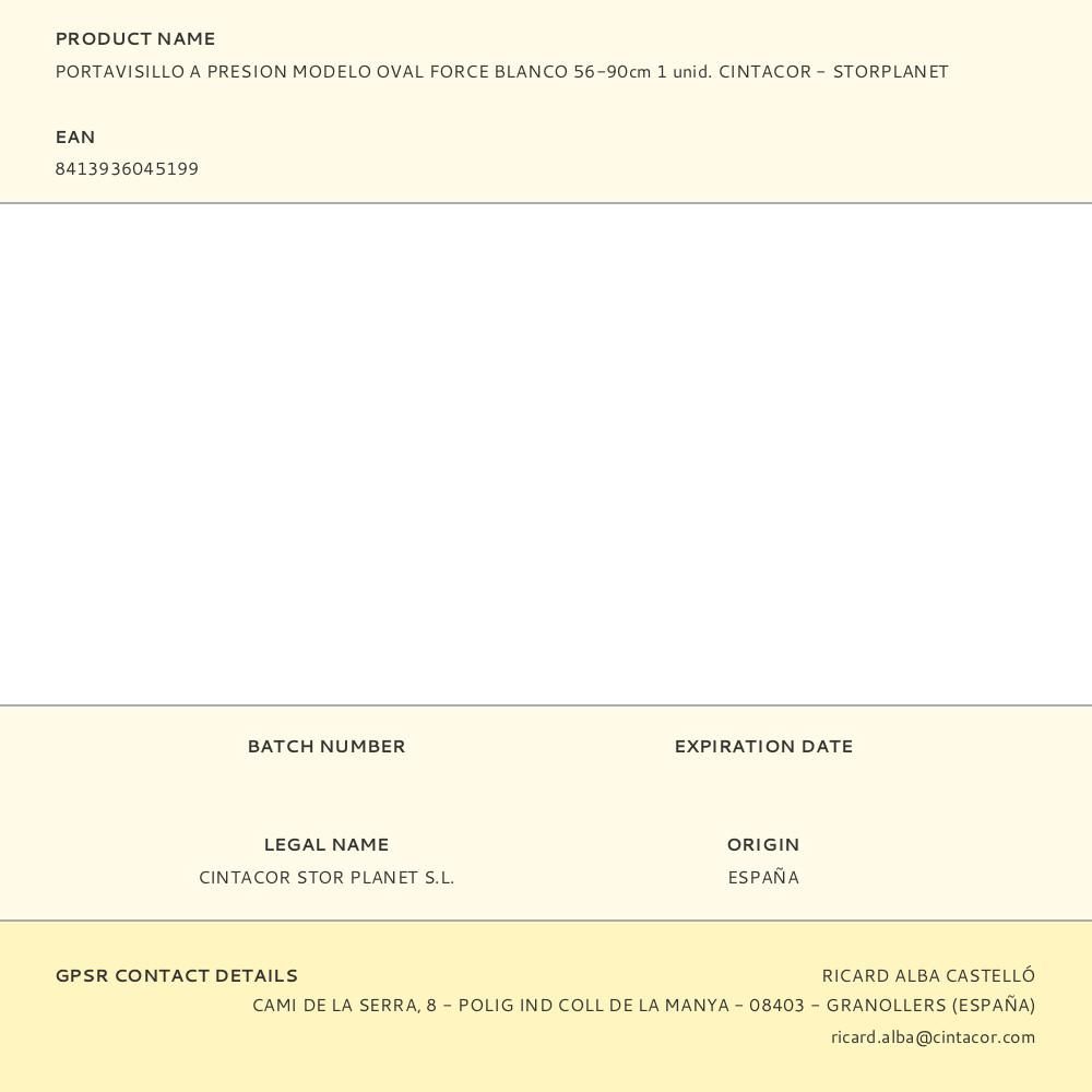 PORTAVISILLO EXTENSIBLE A PRESIÓN MODELO OVAL FORCE BLANCO, 56 - 90 cm. INSTALACIÓN A VENTANA