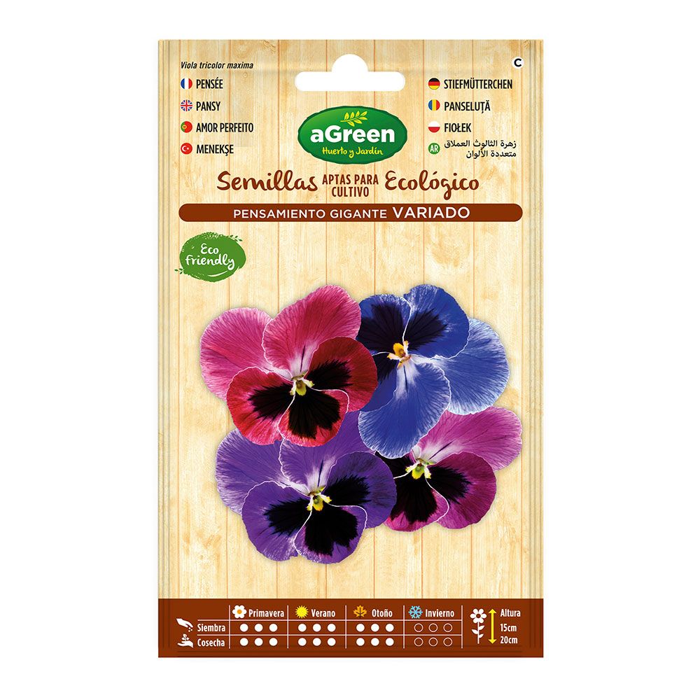 SOBRE CON SEMILLAS DE PENSAMIENTO GIGANTE AGREEN. PLANTA BIANUAL. EMPLEO: MACIZOS, ORILLAS Y PARTERRES.