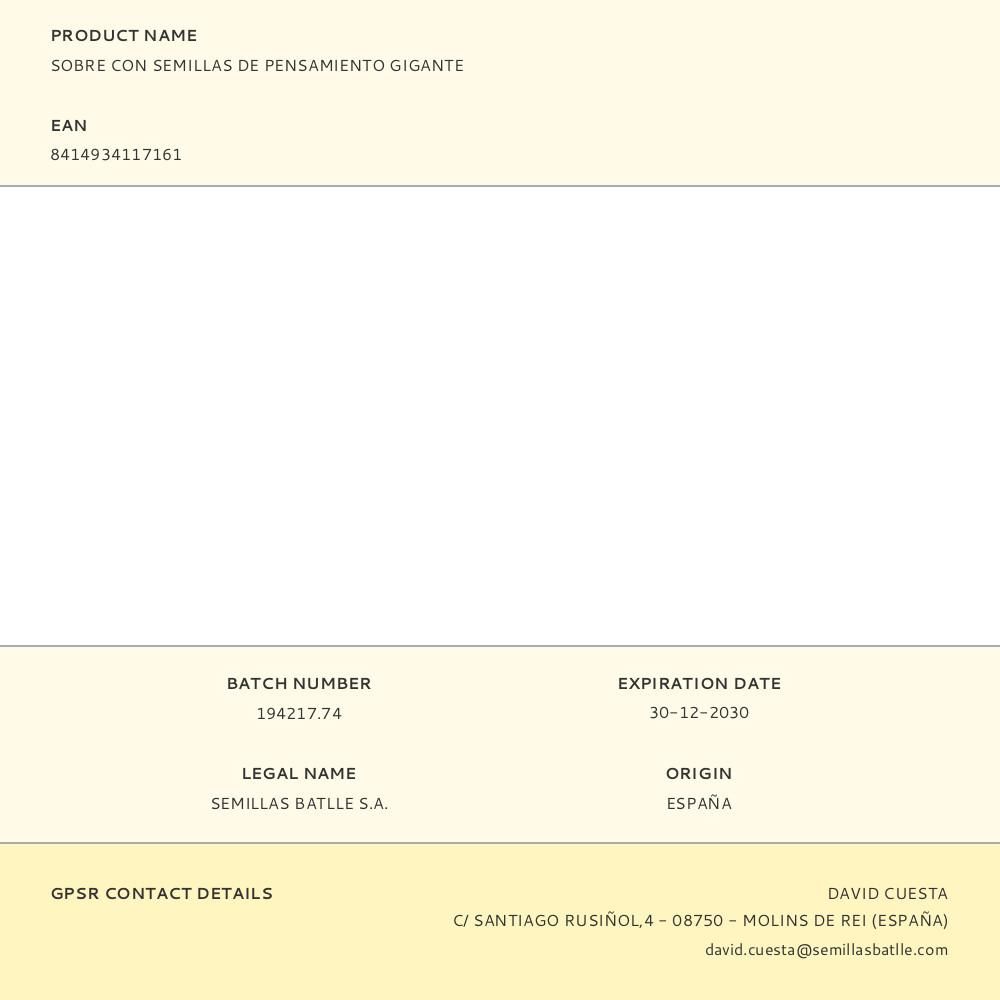 SOBRE CON SEMILLAS DE PENSAMIENTO GIGANTE