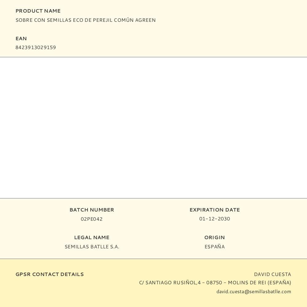 SOBRE CON SEMILLAS ECO DE PEREJIL COMÚN AGREEN