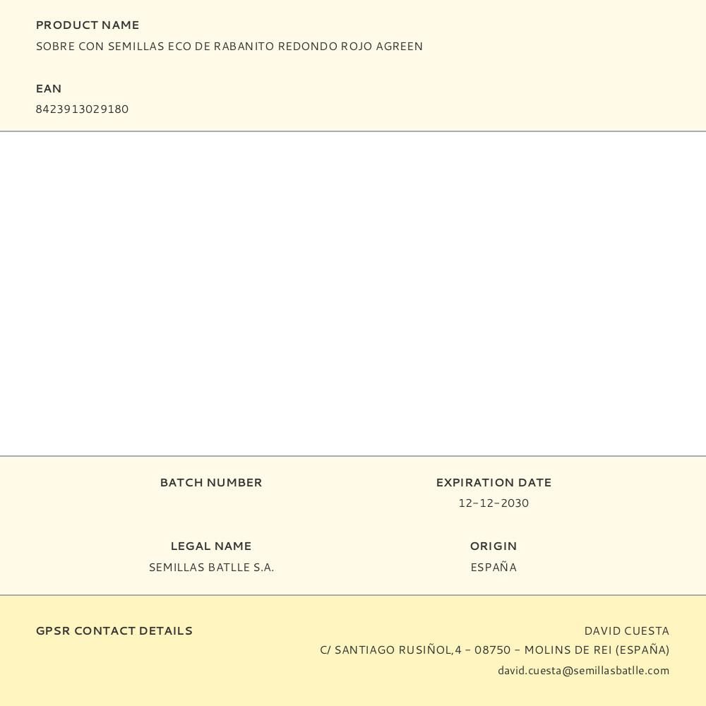 SOBRE CON SEMILLAS ECO DE RABANITO REDONDO ROJO AGREEN