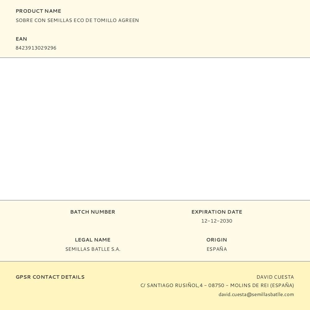 SOBRE CON SEMILLAS ECO DE TOMILLO AGREEN