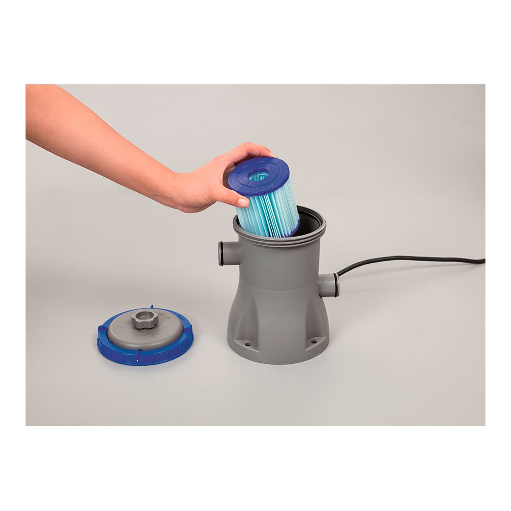 DEPURADORA DE CARTUCHO 1.249 L/h MEDIDA: Ø25 x 27 cm. CON CONEXION DE MANGUERAS DE Ø32 mm. TENSION: 220-240 V. PARA PISCINAS DE 1100-8300 L. INCLUYE: TUBOS MANGUERA