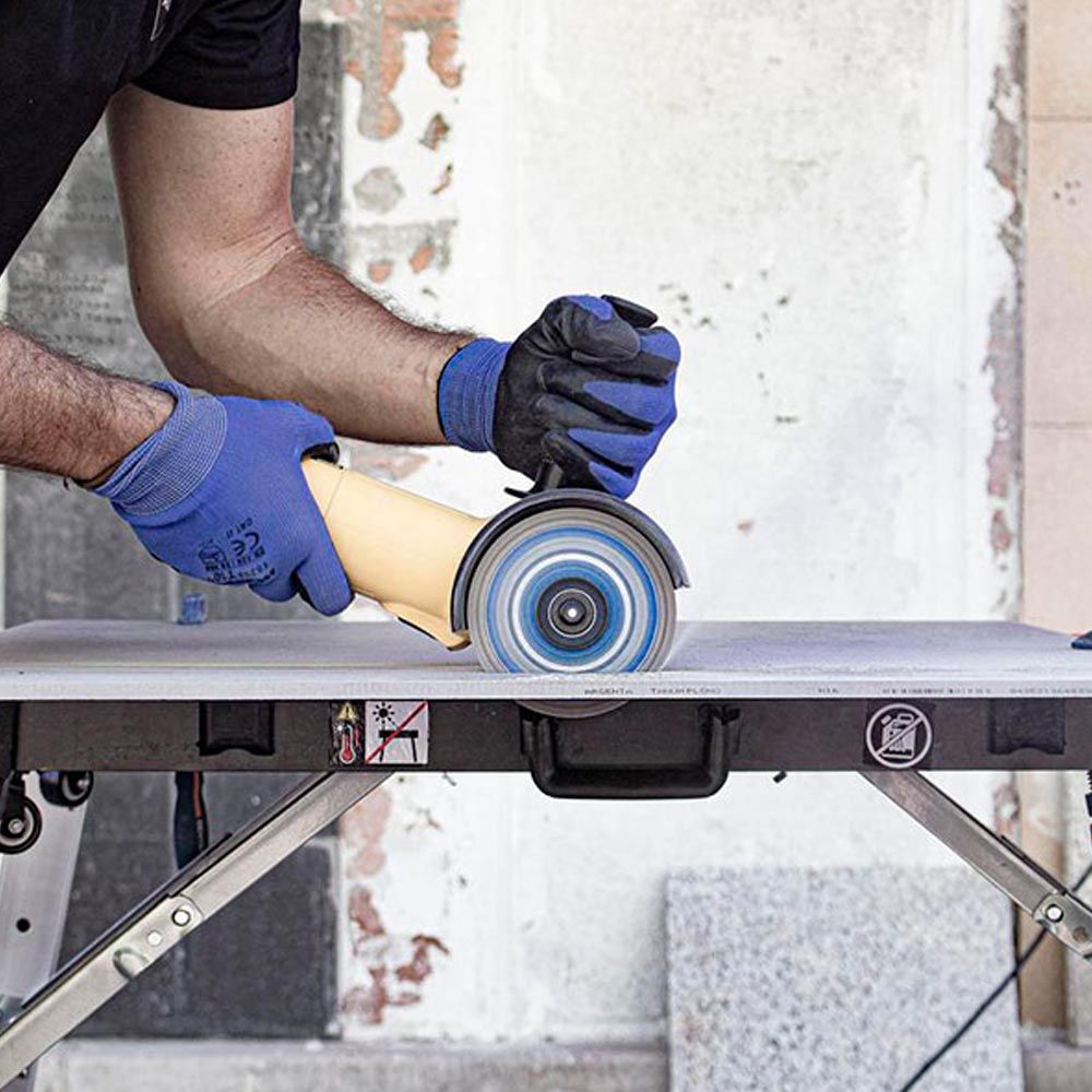 DISCO DIAMANTADO TVR Ø115 mm SUPERPRO. RECOMENDADO PARA EL CORTE EN SECO DE MATERIALES DUROS COMO: GRANITO, GRES RÚSTICO, CLÍNKER, REFRACTARIOS, PIZARRA Y, POR SUPUESTO, GRES PORCELÁNICO.GRAN VELOCIDAD Y RESISTENCIA EN EL CORTE DE LOS MATERIALES MÁS DUROS, SIN RENUNCIAR A LA CALIDAD DEL ACABADO.REFUERZO CENTRAL EN EL ALMA DE ACERO QUE LE OTORGA UNA MAYOR RESISTENCIA A LA FLEXIÓN