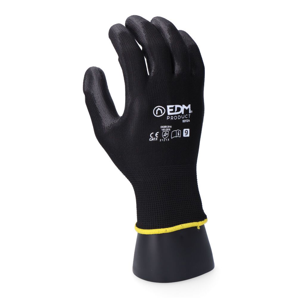GUANTE POLIÉSTER CON PALMA DE POLIURETANO PARA JARDÍN AGRICULTURA EN LA PALMA T-07. INDICADO PARA BRICOLAJE. ALMACENAMIENTO Y REPOSICIÓN. MANIPULACIÓN, MONTAJE Y ENSAMBLAJE DE PIEZAS EN ENTORNOS SECOS, LIGERAMENTE HÚMEDOS O ENGRASADOS. TRABAJOS EN EL CAMPO. BUEN TACTO Y TRANSPIRABLE. FLEXIBLE. COLOR OSCURO PARA ENTORNOS SUCIOS