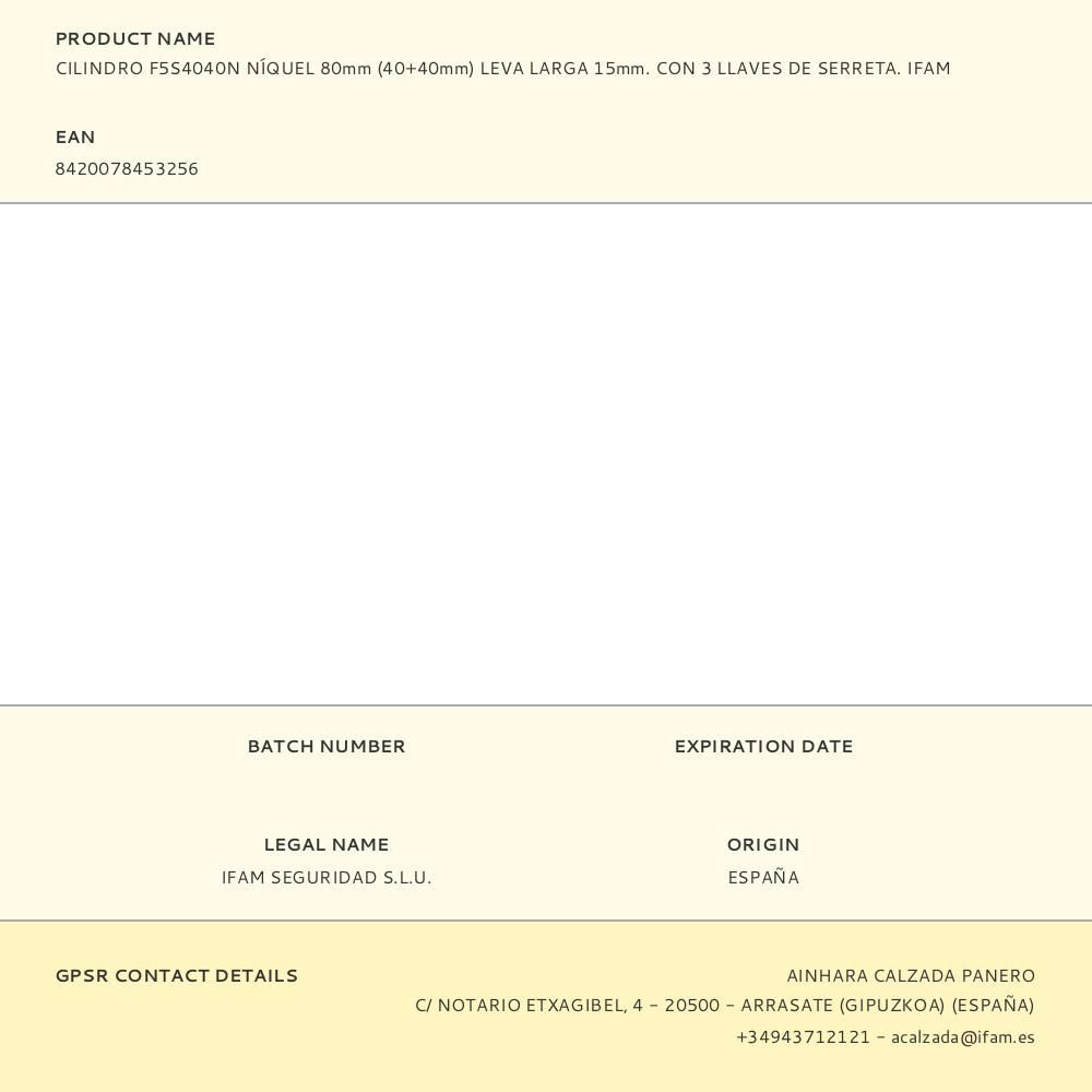 CILINDRO F5S4040N NÍQUEL 80mm (40+40mm) LEVA LARGA 15mm. CON 3 LLAVES DE SERRETA. CILINDRO EUROPERFIL. PARA PUERTA. SOLUCIÓN SIMPLE Y ALTA CALIDAD. DE LATÓN EXTRUIDO. IFAM