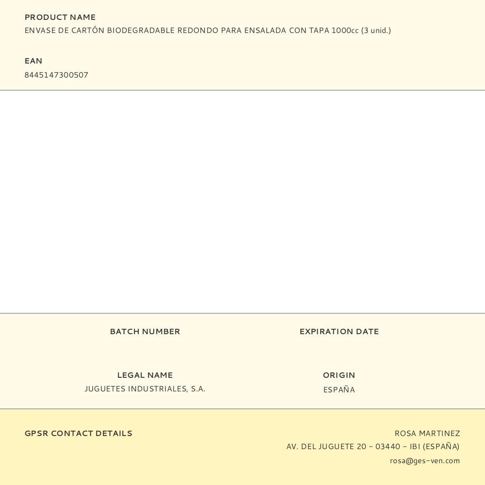 ENVASE DE CARTÓN REDONDO CON TAPA 1000cc, 3 uds
