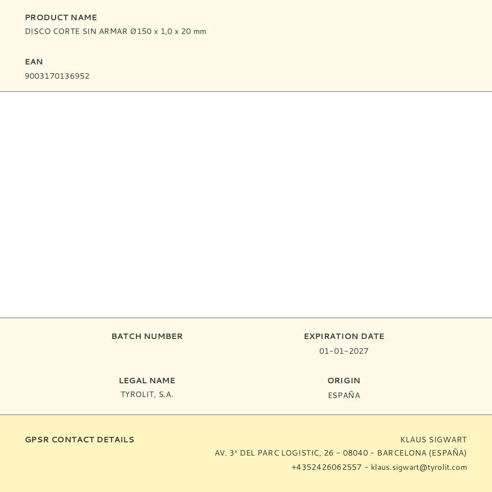 DISCO CORTE SIN ARMAR Ø150 x 1,0 x 20 mm. 41N PARA SU USO EN APLICACIONES CON ACERO. CORTE SECO EN MÁQUINAS ESTACIONARIAS Y AUTOMÁTICAS DE AFILAR SIERRAS.MÁXIMO RENDIMIENTO CON UN DESGASTE DE LA HERRAMIENTA NOTABLEMENTE REDUCIDO