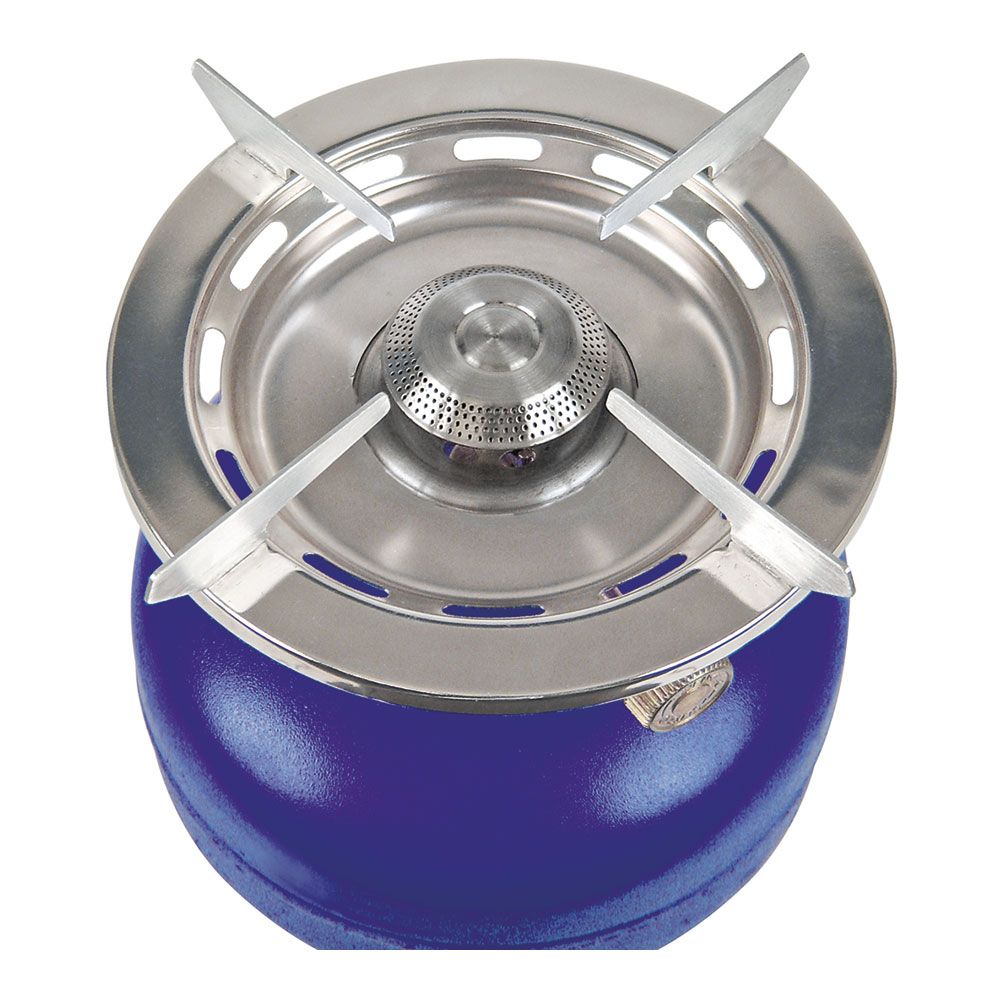 FOGÓN DE CAMPING DESTROYER BOTELLA AZUL (BOTELLA NO INCLUIDA) FOGÓN DE ALTA POTENCIA CON ASA INCORPORADA, DIMENSIONES: Ø23x7cm (diametro/altura), POTENCIA: 2400W, CONSUMO: 188g/h BUTSIR