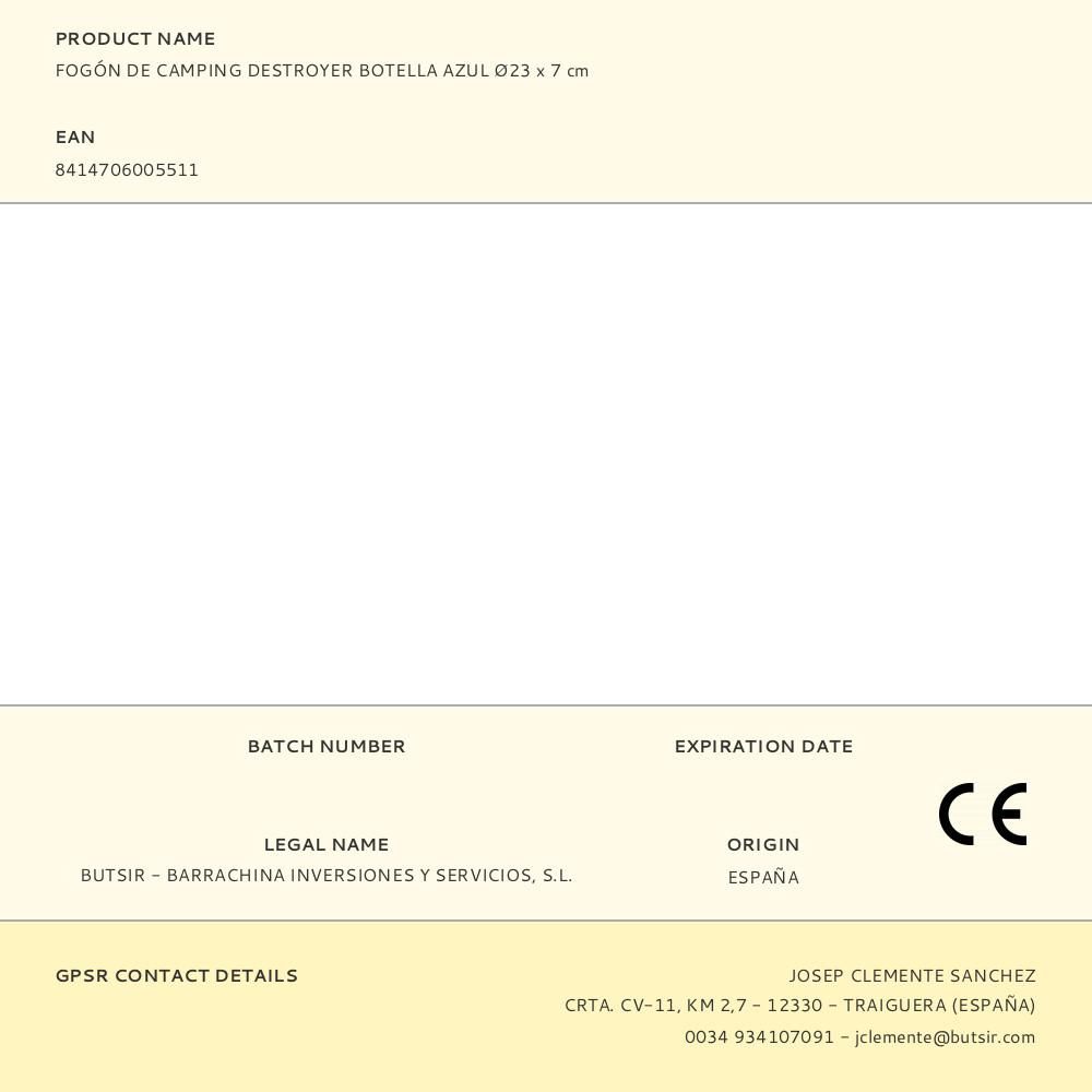 FOGÓN DE CAMPING DESTROYER BOTELLA AZUL Ø23 x 7 cm