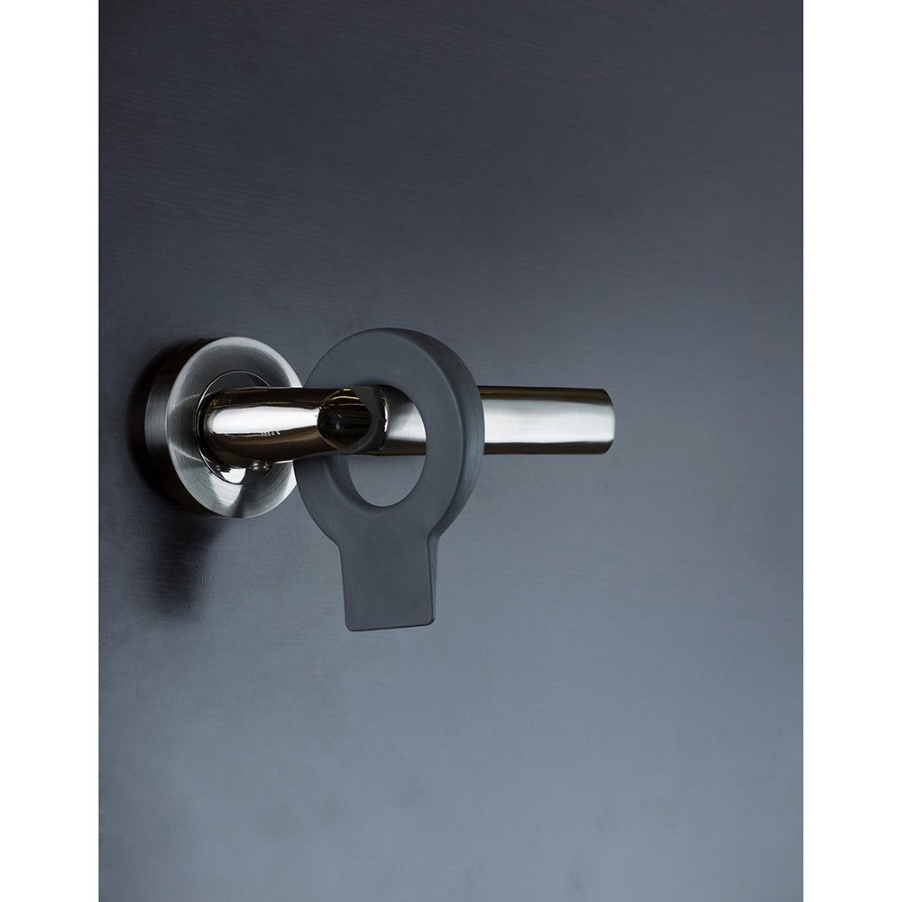 RETENEDOR DE CUÑA PARA PUERTA LOCK. FABRICADO EN TPS ANTRACITA. PROTEGE PAREDES Y PUERTAS FRENTE A IMPACTOS QUE PUEDAN DAÑARLOS. PRÁCTICO, FLEXIBLE Y LAVABLE. COLGABLE EN LA MANILLA CUANDO NO SE PRECISA SU USO. NO NECESITA INSTALACIÓN. DIMENSIONES: 64x82x15mm (ancho/fondo/alto). REI