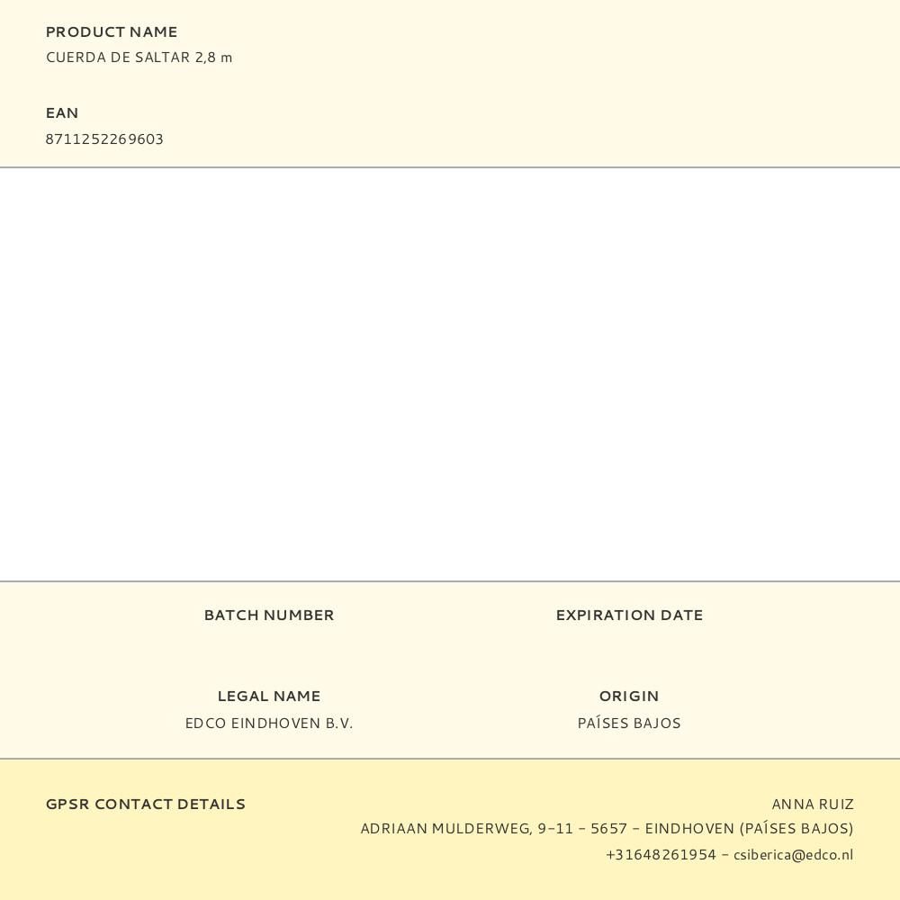 CUERDA DE SALTAR 2,8 m - MATERIAL: PVC/PP
