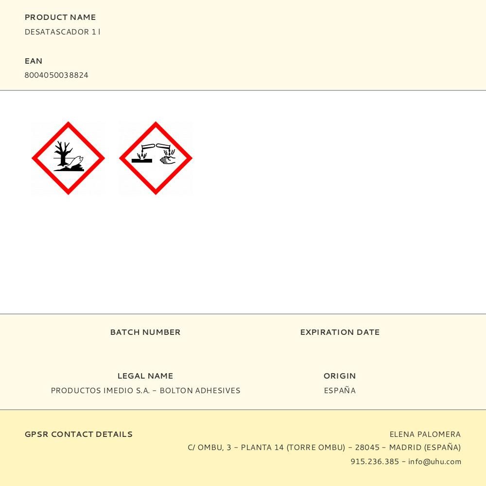 DESATASCADOR 1L REF. 6309346. ES EL REMEDIO IDEAL PARA ELIMINAR LOS MALOS OLORES Y LOS RESIDUOS DE TODOS LOS DESAGÜES.GRACIAS A SU FÓRMULA ESPECIAL, ELIMINA LOS MALOS OLORES AL INSTANTE, ADEMÁS, SI SE USA UNA VEZ A LA SEMANA, PREVIENE EL RETORNO DE MALOS OLORES Y RESIDUOS.
