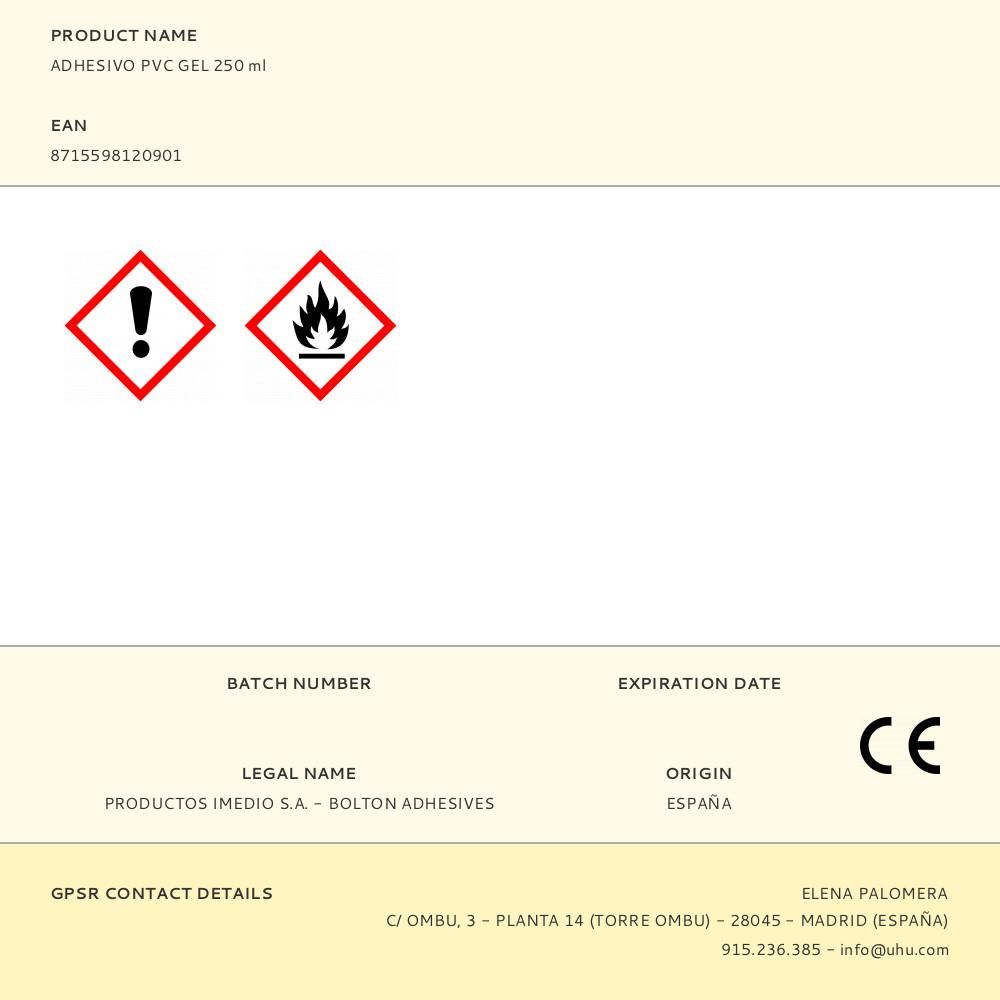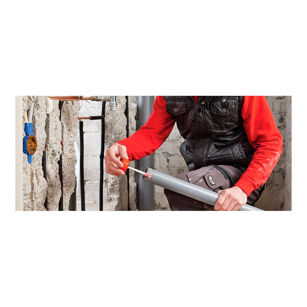 ADHESIVO PARA PVC RÍGIDO, RÁPIDO, TIXOTRÓPICO, SIN THF. PARA LA UNIÓN DE TUBOS, MANGUITOS Y EMPALMES CON AJUSTES ENCAJADOS Y MÁS HOLGADOS (RELLENO DE RANURAS) EN SISTEMAS DE PRESIÓN Y DESAGÜE. CON BROCHA ESPECIAL PARA UNA APLICACIÓN RÁPIDA Y SENCILLA. APTO PARA DIÁMETROS = 250mm. MÁX. 16 BAR (PN 16). TOLERANCIA MÁXIMA 0,6mm CON AJUSTE HOLGADO / 0,2mm CON AJUSTE FORZADO. APTO PARA, ENTRE OTROS, SISTEMAS DE TUBERÍAS CONFORMES CON LAS NORMATIVAS EN 1329, 1452, 1453 Y 1455.