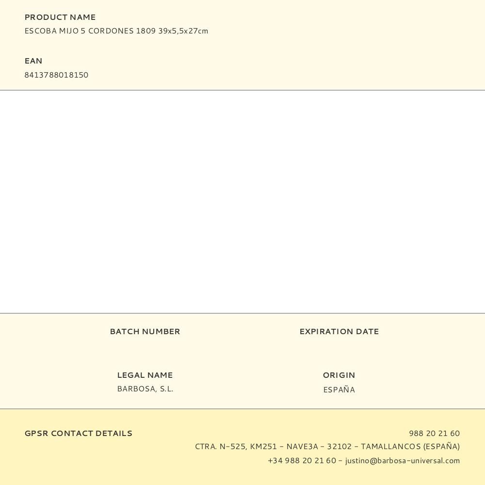 ESCOBA MIJO 5 CORDONES 1809 DIMENSIONES: 39x5,5x27cm . 1,40m