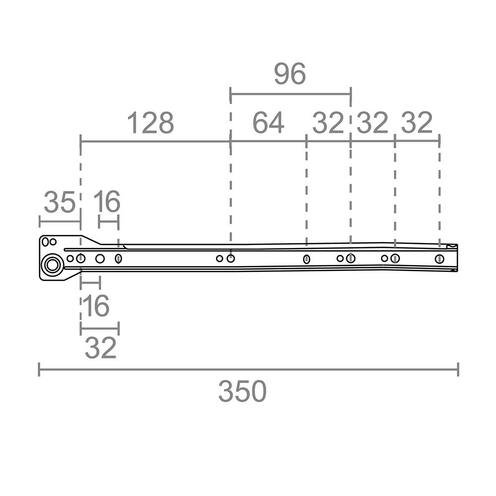 JUEGO DE GUIA 350mm. DIMENSIONES: 10x35mm (ancho/alto). EN ACERO. PARA CAJÓN CON SISTEMA ESTANDAR DE FIJACIÓN CON TORNILLOS. GUIAS DE EXTRACCIÓN PARCIAL. MARGEN NECESARIO PARA EL MONTAJE DE 1-2mm APROXIMADAMENTE. ESPESOR DE LA CHAPA DE 1mm. ACABADO BLANCO. SOPORTA UNA CARGA MÁXIMA DE 18kg. MICEL
