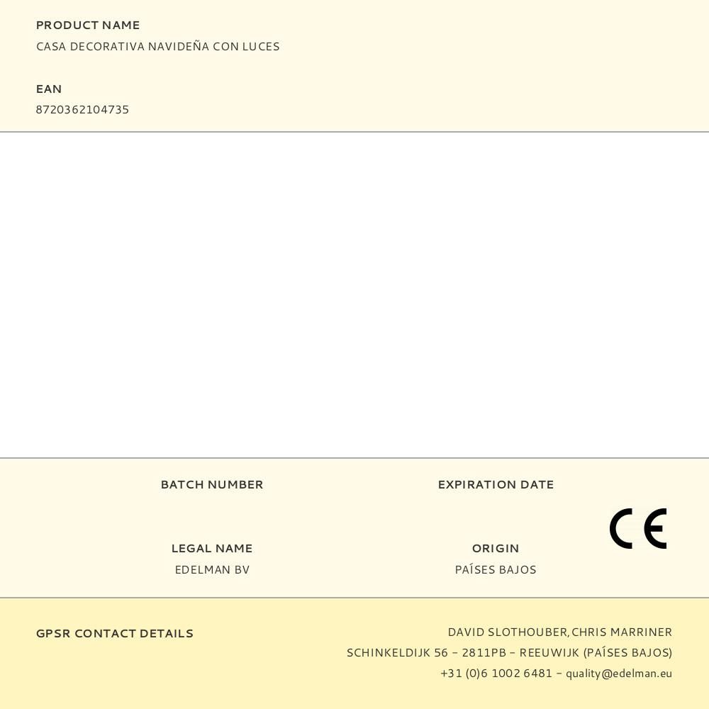 CASA DECORATIVA NAVIDEÑA CON LUCES. MEDIDAS: 20,5x14,5x34cm. FUNCIONA CON 3 PILAS TIPO AA NO INCLUIDAS.