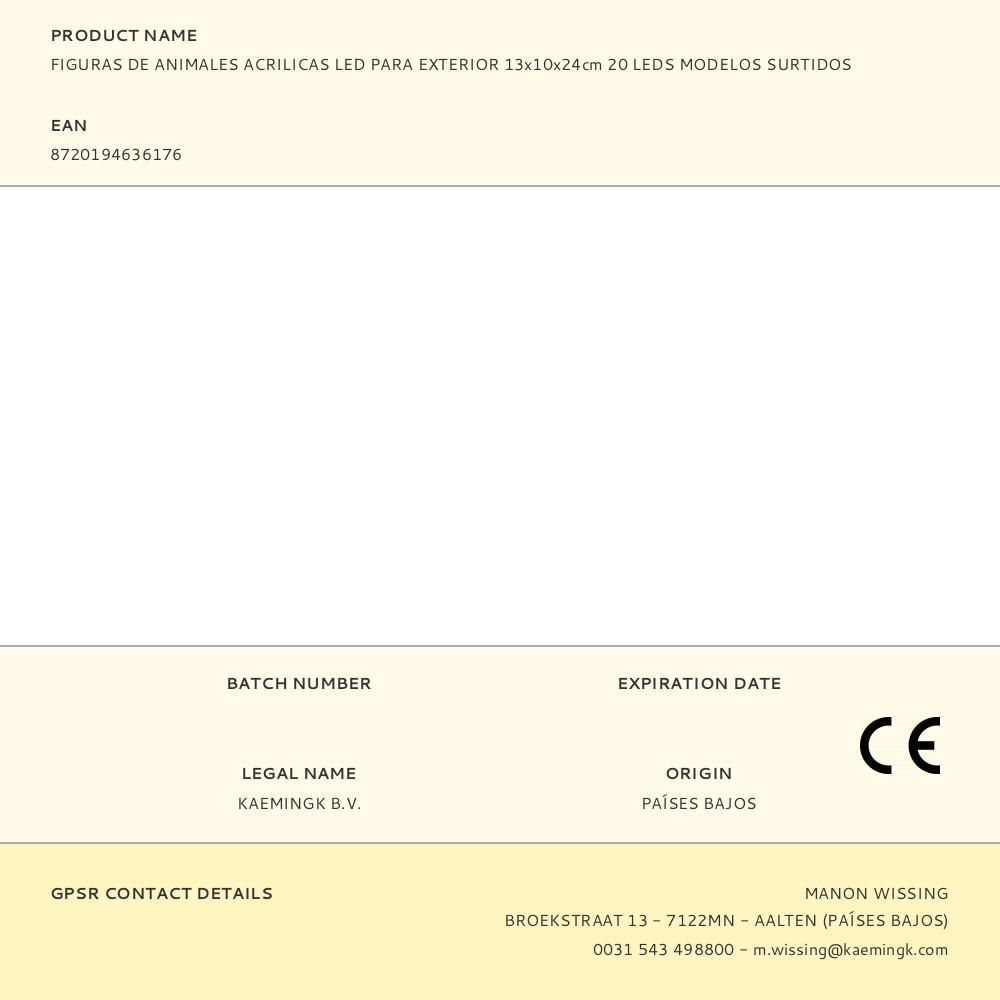 FIGURAS DE ANIMALES ACRILICAS LED PARA EXTERIOR 13x10x24cm 20 LEDS MODELOS SURTIDOS
