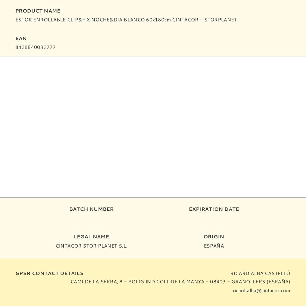 ESTOR ENROLLABLE CLIP & FIX, NOCHE & DIA, BLANCO 60 x 180 cm