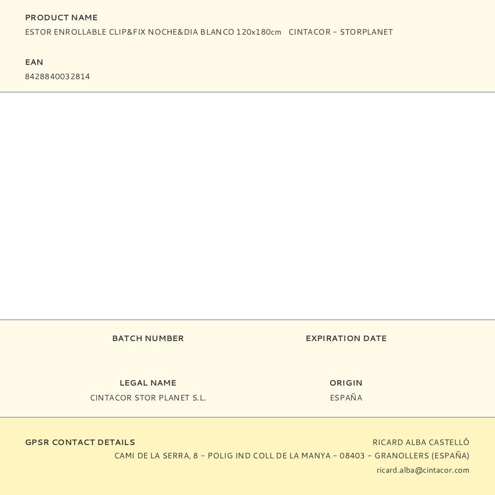 ESTOR ENROLLABLE CLIP & FIX, NOCHE & DIA, BLANCO 120 x 180 cm
