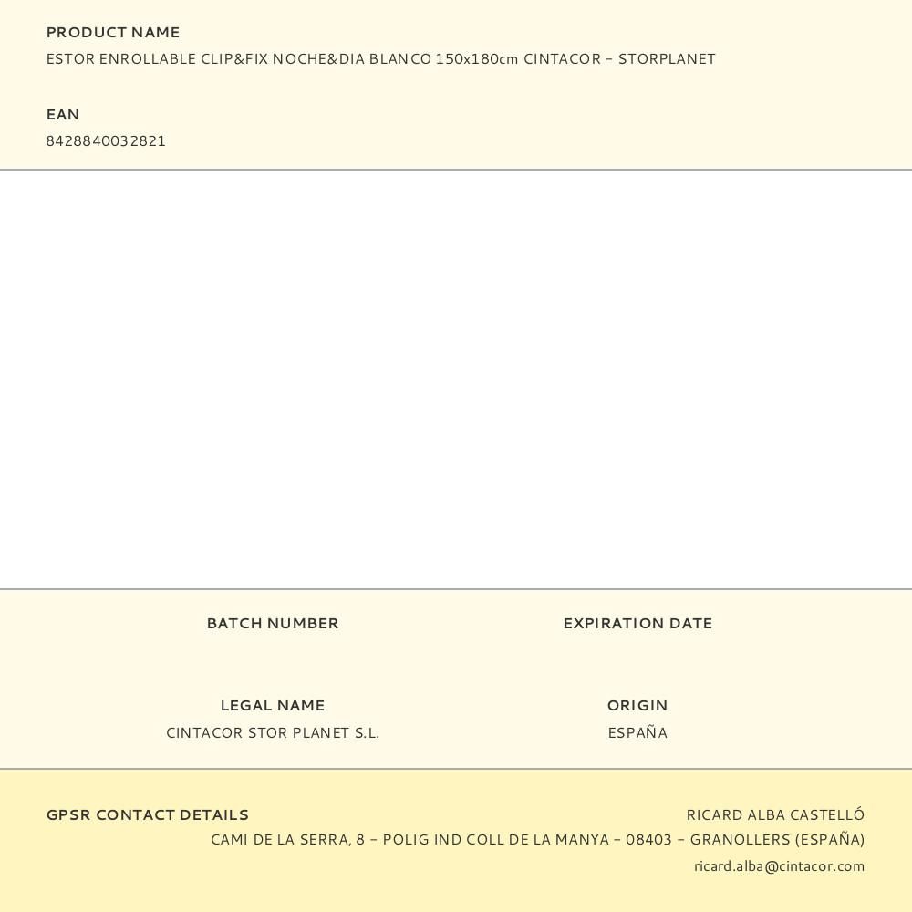 ESTOR ENROLLABLE CLIP & FIX, NOCHE & DIA, BLANCO 150 x 180 cm