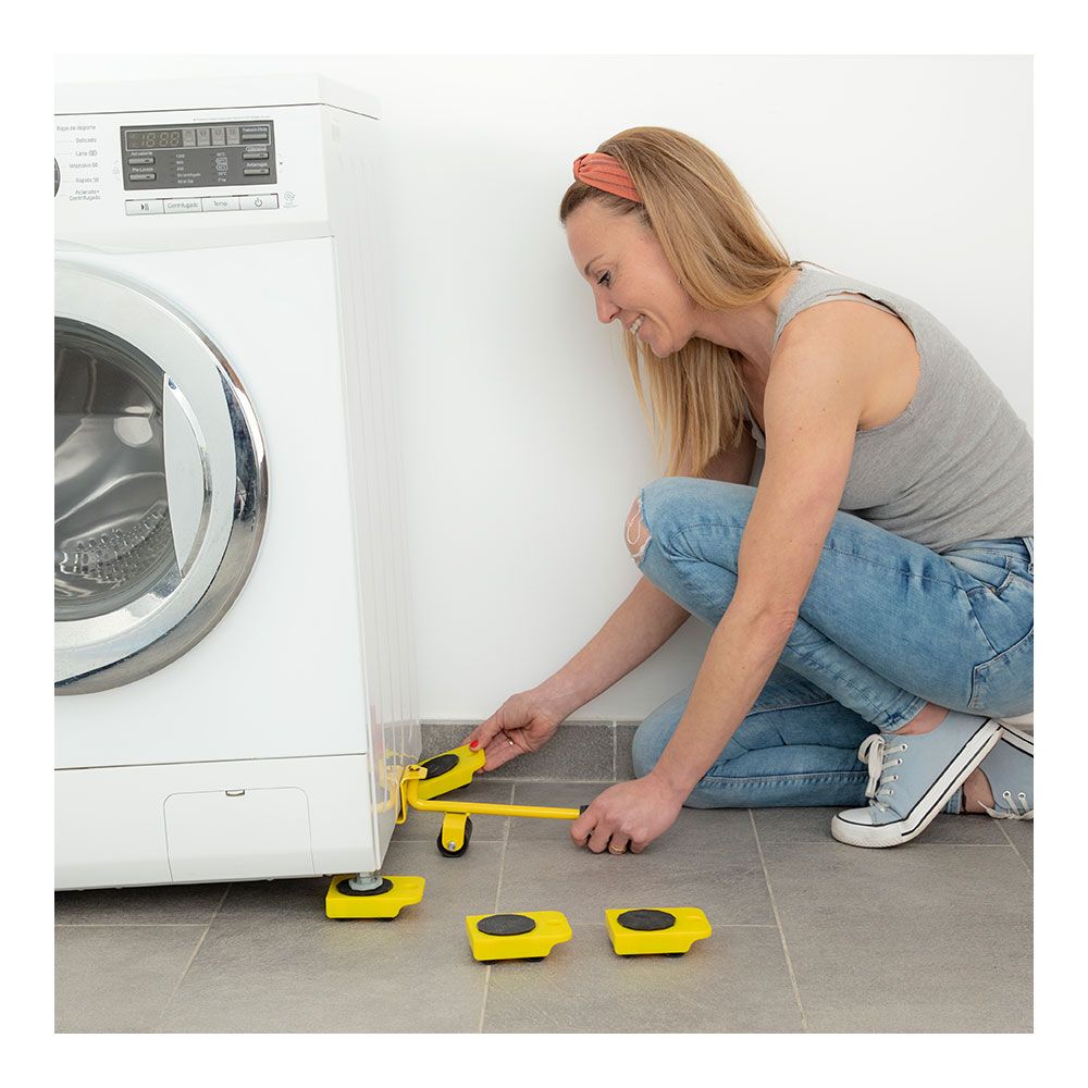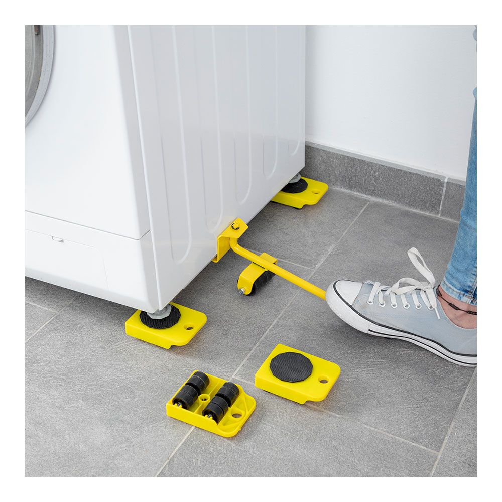HERRAMIENTA DE ELEVACION Y TRANSPORTE. PERMITE MOVER, LEVANTAR,COLOCAR,ETC CON FACILIDAD OBJETOS PESADOS EN EL ENTORNO DOMÉSTICO, COMO MUEBLES, CAJAS PESADAS, ELECTRODOMÉSTICOS, ETC. SE ADAPTA COMPLETAMENTE A LA DIRECCIÓN DE TRANSPORTE DESEADA, CONSTA DE MANGO ELEVADOR ERGONÓMICO Y ANTIDESLIZANTE CON CAPACIDAD PARA GIRAR HASTA 180° Y DE 4 PIEZAS DE SOPORTE CON RUEDAS QUE PUEDEN GIRAR HASTA 360°. LA PALANCA ELEVADORA SOPORTA HASTA 200kg Y LAS PIEZAS CON RUEDAS SOPORTAN HASTA 150kg. ADEMÁS, SE PUEDE TRANSPORTAR Y GUARDAR FÁCILMENTE. SE RECOMIENDA NO UTILIZARLO EN SUELOS RUGOSOS, EN PENDIENTES O EN RAMPAS. MATERIAL: HIERRO, MEDIDAS APROX: 35 x 9 x 10 cm