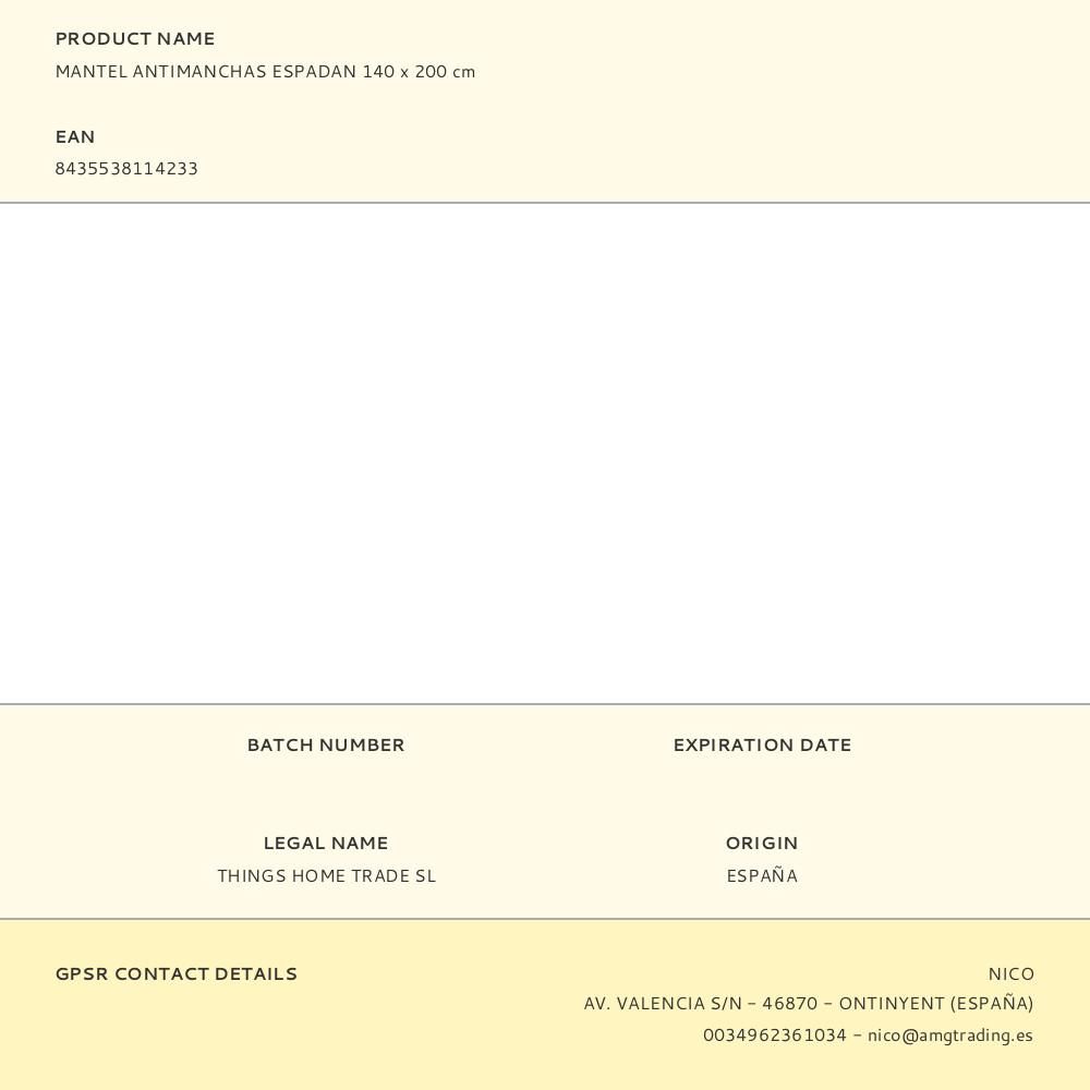 MANTEL ANTIMANCHAS ESPADAN 140 x 200 cm