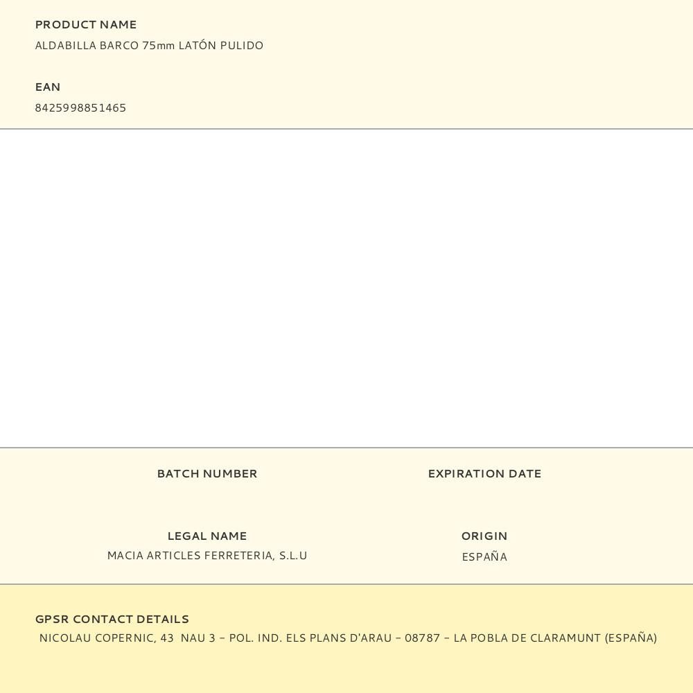 ALDABILLA BARCO 75mm LATÓN PULIDO