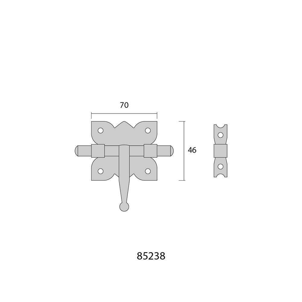 PASADOR RÚSTICO DE HIERRO NEGRO, MEDIDA DE LA PLACA 70 x 46 mm, MEDIDA TOTAL DEL PASADOR 100 mm