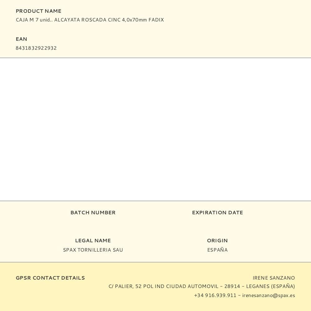CAJA M 7 unid.. ALCAYATA ROSCADA CINC 4,0x70mm FADIX