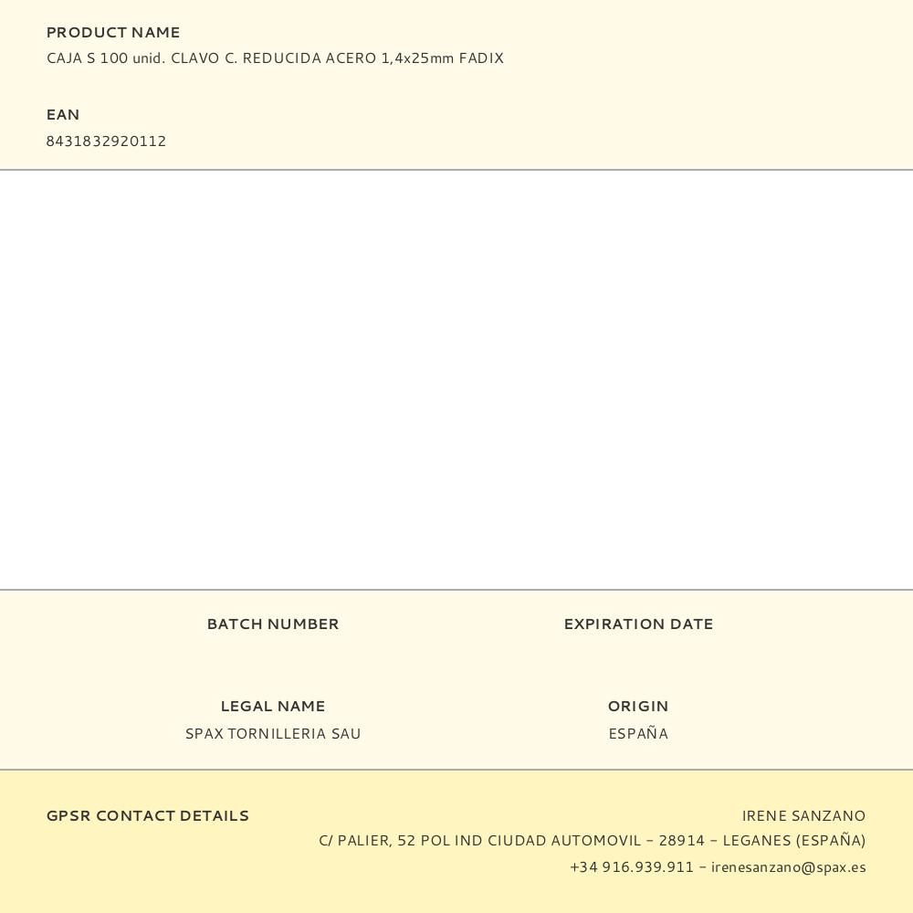 CAJA S 100 unid. CLAVO C. REDUCIDA ACERO 1,4x25mm FADIX