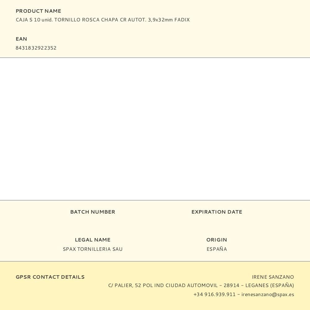 CAJA S 10 unid. TORNILLO ROSCA CHAPA CR AUTOT. 3,9x32mm FADIX