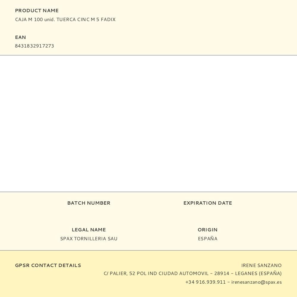 CAJA M 100 unid. TUERCA CINC M 5 FADIX