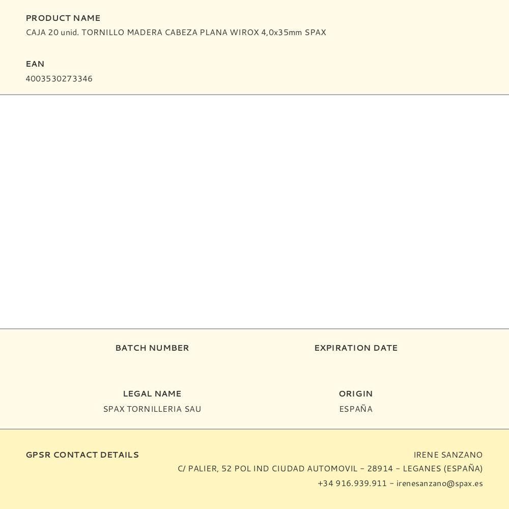 CAJA 20 unid. TORNILLO MADERA CABEZA PLANA WIROX 4,0x35mm SPAX