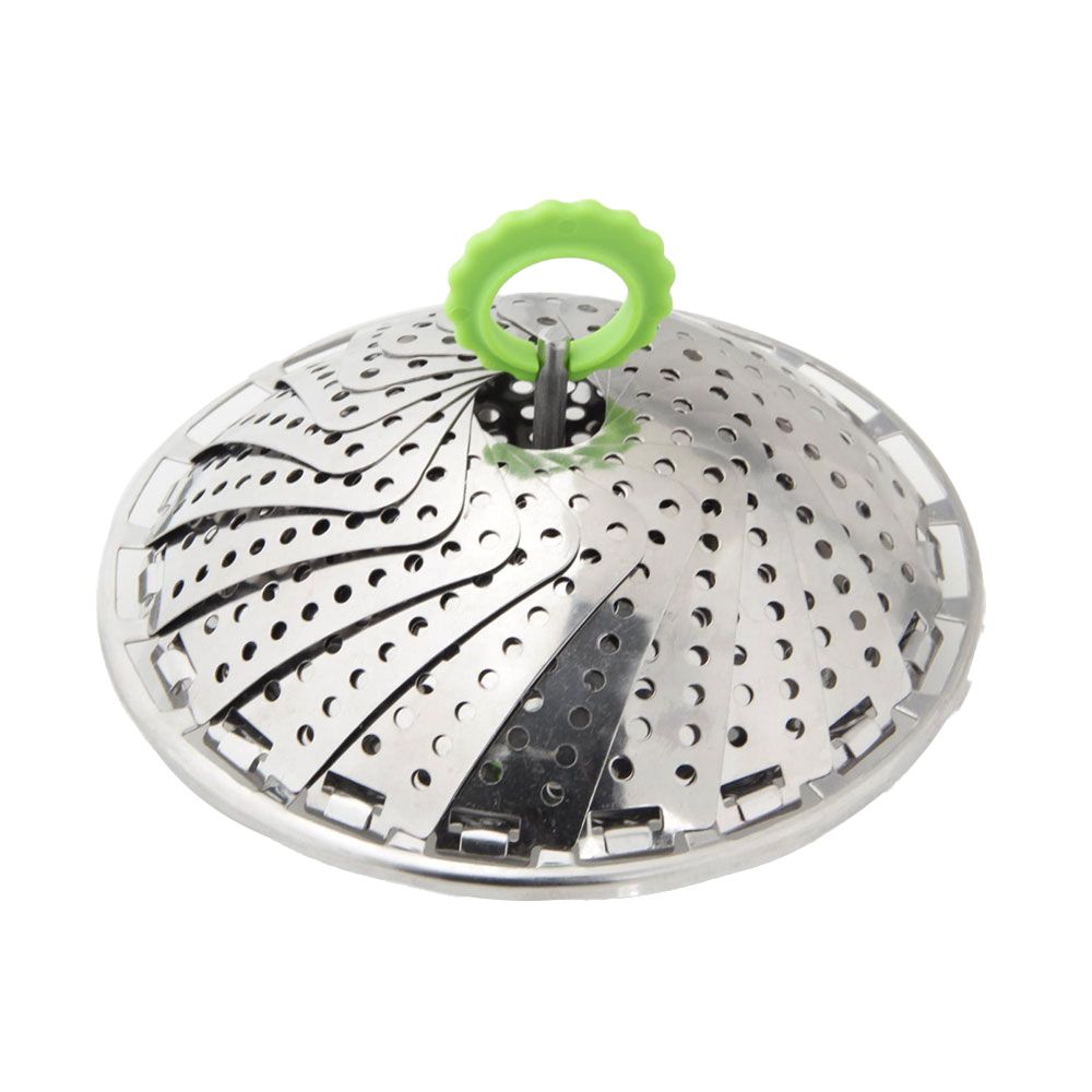 CESTILLO PARA COCCION AL VAPOR 13-24cm, FOOD&MORE, MATERIAL: ACERO INOXIDABLE, ANILLA: POLIAMIDA, Ø130-240mm, PLEGABLE, IDEAL PARA COCER VERDURAS, PATATAS, ETC. AL VAPOR, APTO PARA LAVAVAJILLAS, COLOR: INOX Y VERDE