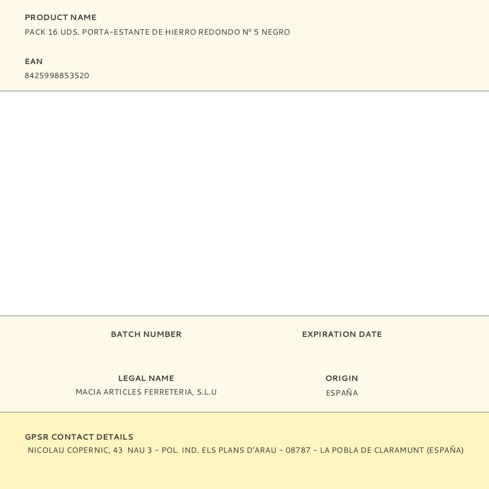 PACK 16 UDS. PORTA-ESTANTE DE HIERRO REDONDO Nº 5 NEGRO