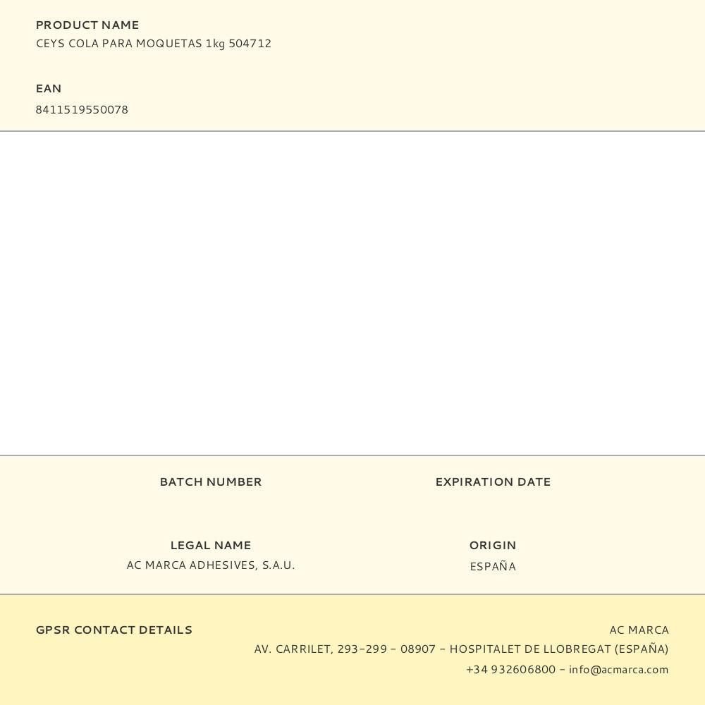 CEYS COLA PARA MOQUETAS 1kg 504712