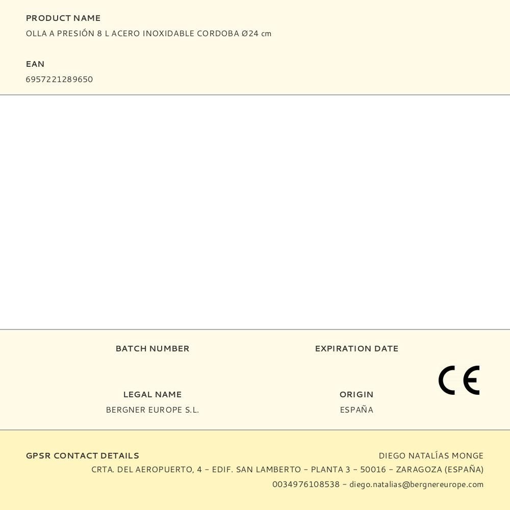 OLLA A PRESIÓN 8 L ACERO INOXIDABLE CORDOBA Ø24 cm