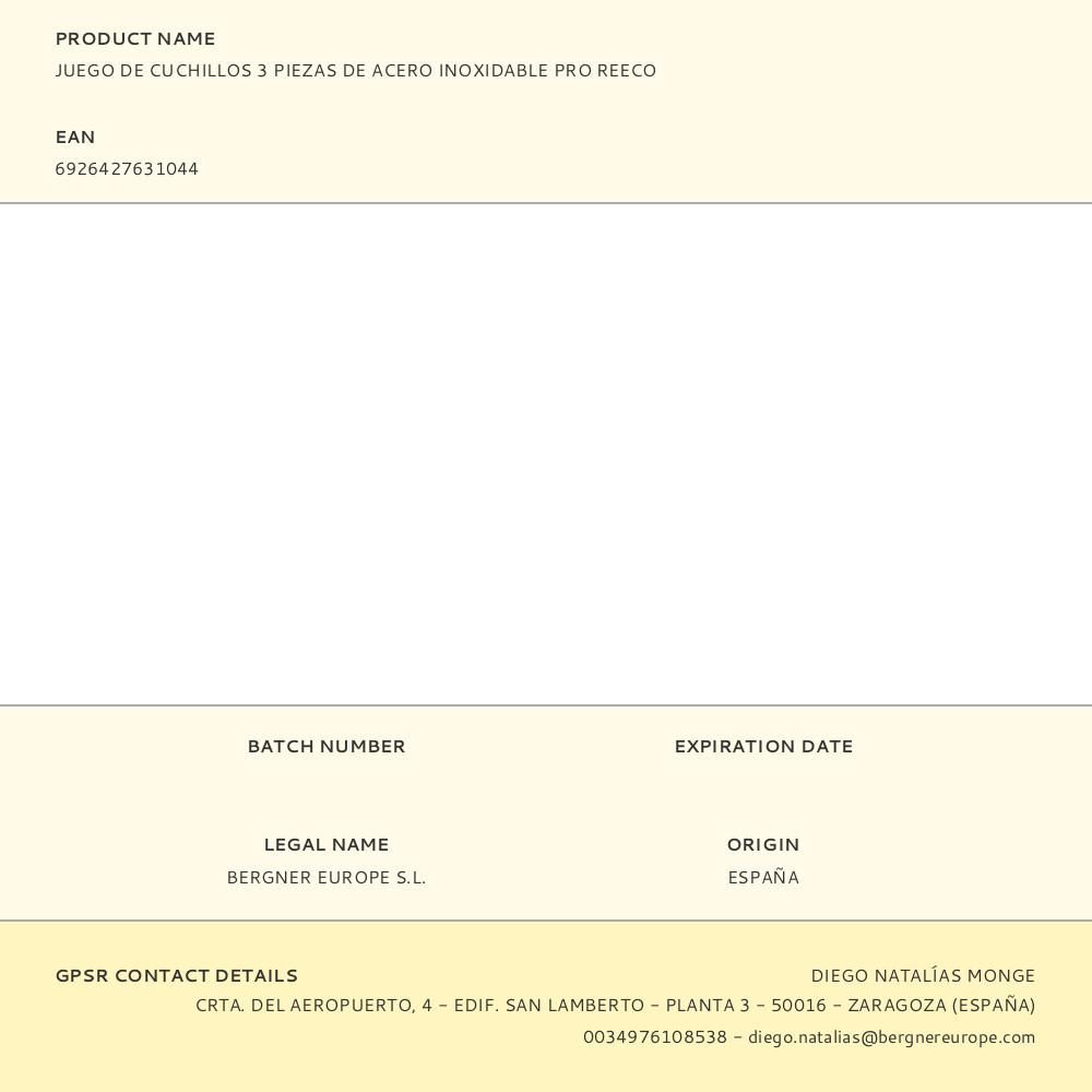 JUEGO DE CUCHILLOS 3 PIEZAS DE ACERO INOXIDABLE PRO REECO
