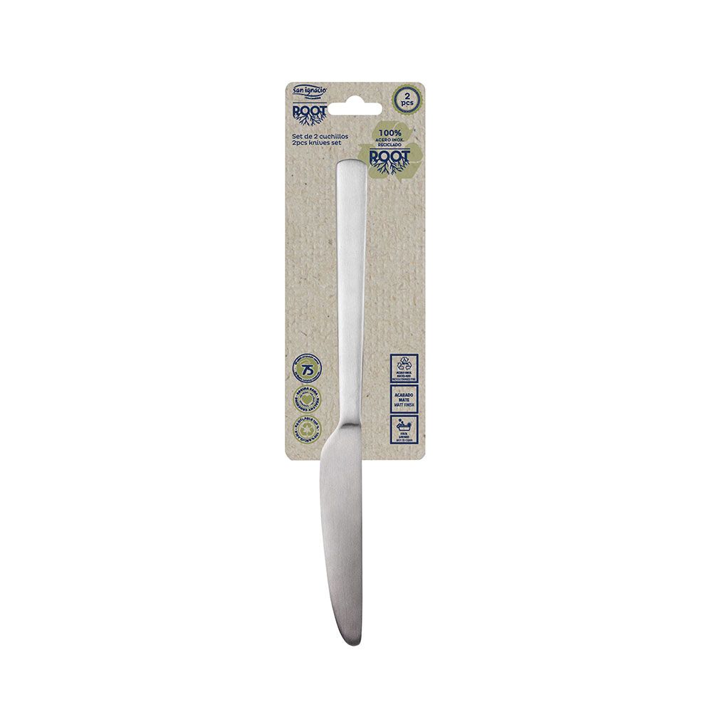 CUCHILLO DE ACERO INOXIDABLE RECICLADO MATE ROOT, BLISTER 2 uds