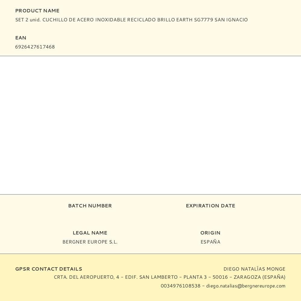 CUCHILLO DE ACERO INOXIDABLE RECICLADO BRILLO EARTH, BLISTER 2 uds