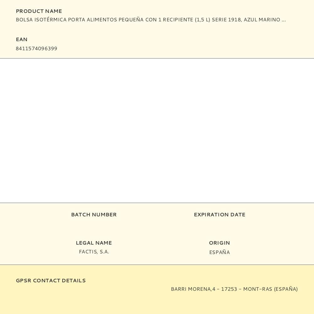 BOLSA ISOTÉRMICA PORTA ALIMENTOS SERIE 1918 AZUL MARINO CON 1 RECIPIENTE 1,5 L