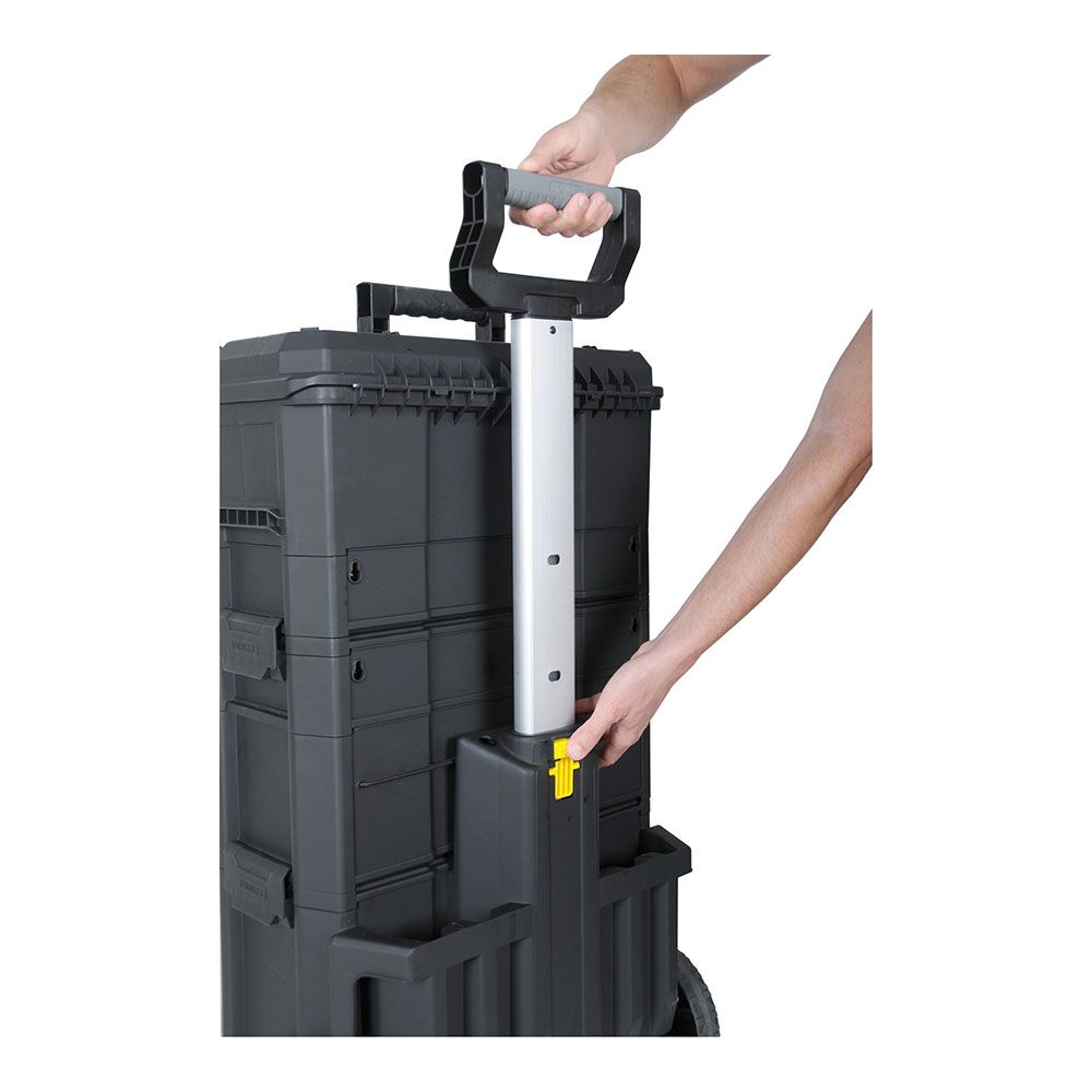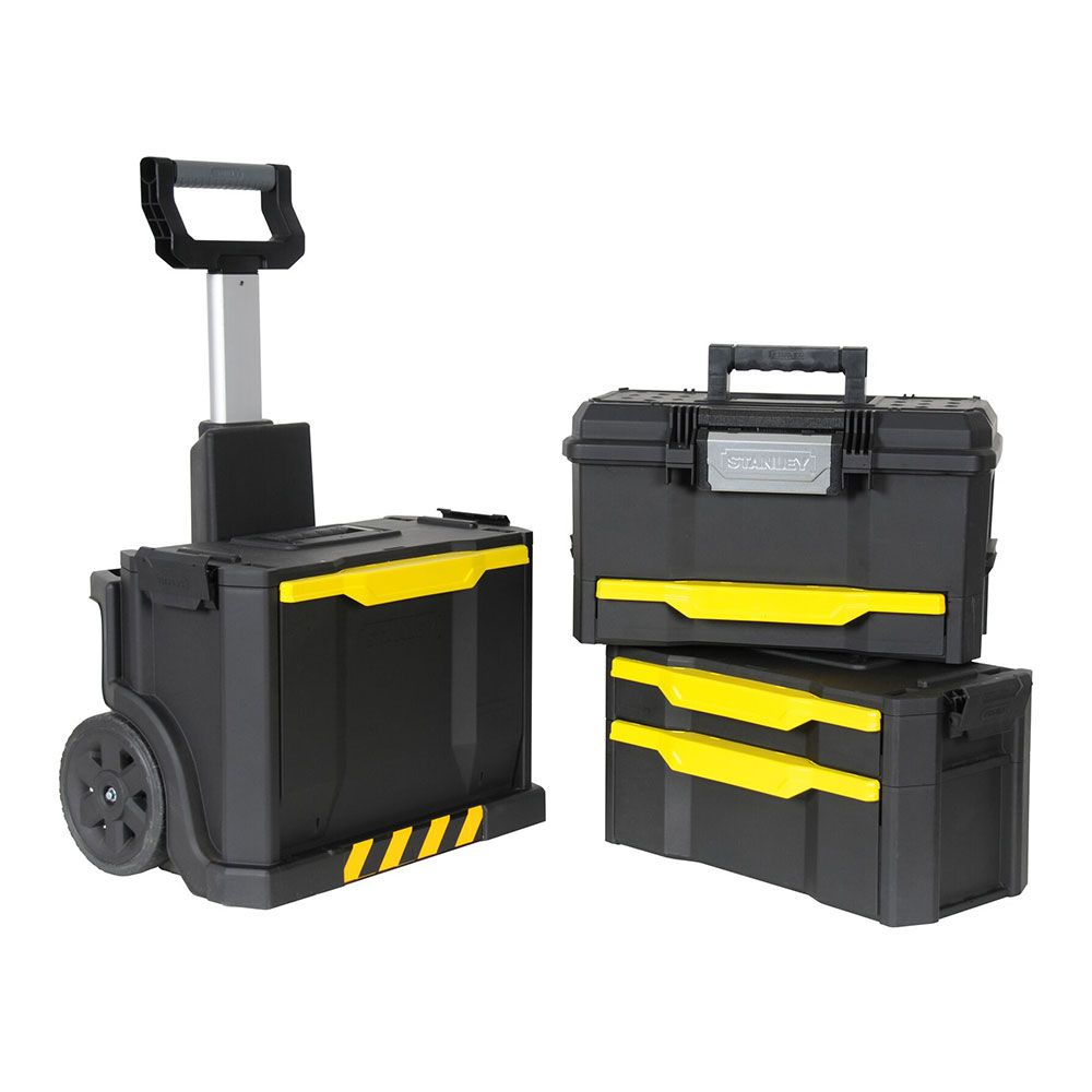 TALLER MÓVIL SISTEMA MODULAR. CAJONERA CON 2 CAJONES, UNO DE POCA PROFUNDIDAD PARA ACCESORIOS PEQUEÑOS Y OTRO CON MÁS PROFUNDIDAD PARA ACCESORIOS MAYORES Y GUIAS DE RODAMIENTO DE BOLAS. CONTENEDOR CON TAPA ABATIBLE DE GRAN CAPACIDAD PARA HERRAMIENTA ELECTRICA, NIVELES ETC. MANGO TELESCÓPICO EN ALUMINIO. BOLSILLOS TRASEROS PARA HERRAMIENTAS LARGAS, COMO NIVELES Y SERRUCHOS